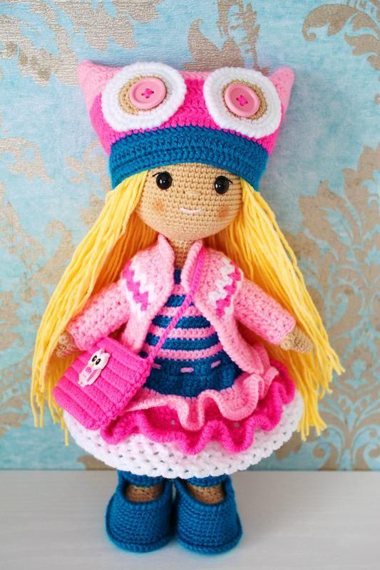 Кукла вязаная в красивом розовом платье с яркой сумочкой и в шапке. подарок дочке. экоигру...