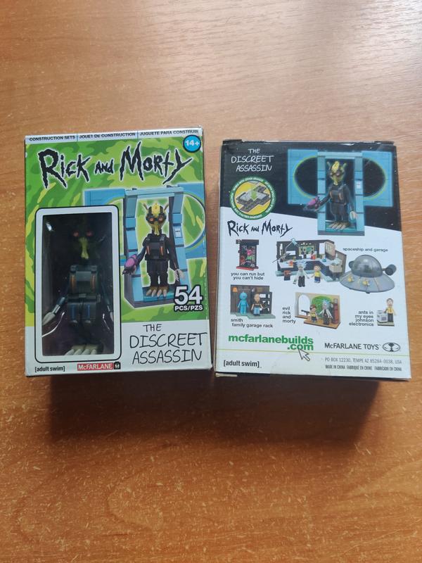 Производитель: McFarlane (оригинал) Сборный микронабор «The Discreet Assassin», вдохновленный телесериалом Дена Хармона ижана Ройланда «Рик и Морти». Конструктор включает в себя сборную фигурку Майкла Кромбопулоса и масштабную дверь лаборатории Gromflam Base Science Lab, основанную на культовых декорациях из «Рика и Морти». В наборе 54 детали. Фигурки имеют шарнирные соединения в основных суставах и сменные головы/концовки. Кирпичики и фигурки совместимы с другими строительными брендами.
