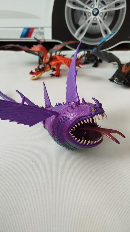 Состояние хорошее. Эксклюзивная игрушка от компании Dreamworks Dragons Довольно редкий дракон , снят с производства Громобой фиолетового цвета из мультфильма "Как приручить дракона". Очень красивый окрас, ужасающая пасть , Размер игрушки : вся длина 35см /размах крыльев 30см Такой красавчик обязательно порадует как ребенка , так и коллекционера ! Громобой относится к виду водных драконов. Его отличительной чертой является способ атаки. Оп плюется не огнем или плазмой, как все остальные драконы, а ультразвуком. Любимая стихия Громобоя - вода. В ней он передвигается на подобие торнадо, сметая все на своем пути. Громобой отлично переносит пребывание на суше, но из-за строения своего тела на ней он уязвим. Громобой имеет возможность метать диски , их нужно поместить в специальное отверстие. В комплект не входят.