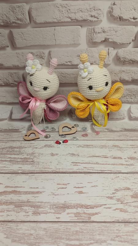 Бабочка ручной работы. Бабочка связана крючком, нитки хлопок, глаза на безопасном креплении, наполнитель холлофайбер. Цвет по Вашему желанию.