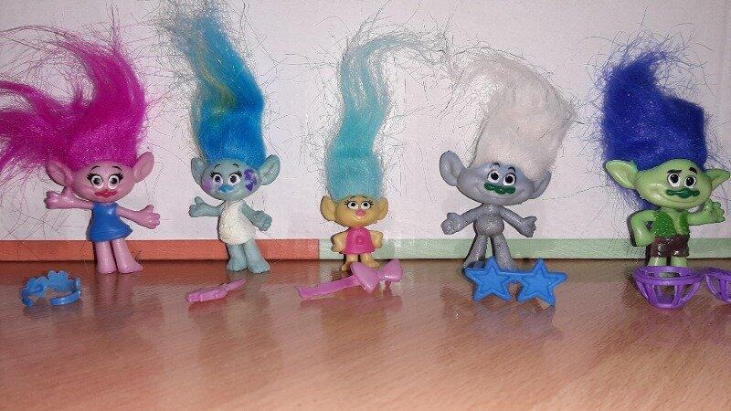 Уважно читайте умови пересилки! Пересилка товару укрпоштою на суму від 150 гривень з Оплатою на карту. Безпечною угодою пересилаю товар на суму від 300 гривень. На пересувні пункти безпечною оплатою не пересилаю, тільки повна оплата на карту. Пересилка товару новою поштою від 200 гривень, оплата тільки на карту. Перед будь якою покупкою, будь якого товару писати продавцю для уточнення Фигурки Тролли Trolls Детские игрушки сделаны в виде фигурок популярного мультфильма Тролли Trolls. есть разные персонажи героев Тролей Миндалька и другие. Средняя высота куклы Trolls составляет 8 см, а ширина 5 см. Новые, в упаковке. Цена указана за одну фигурку.