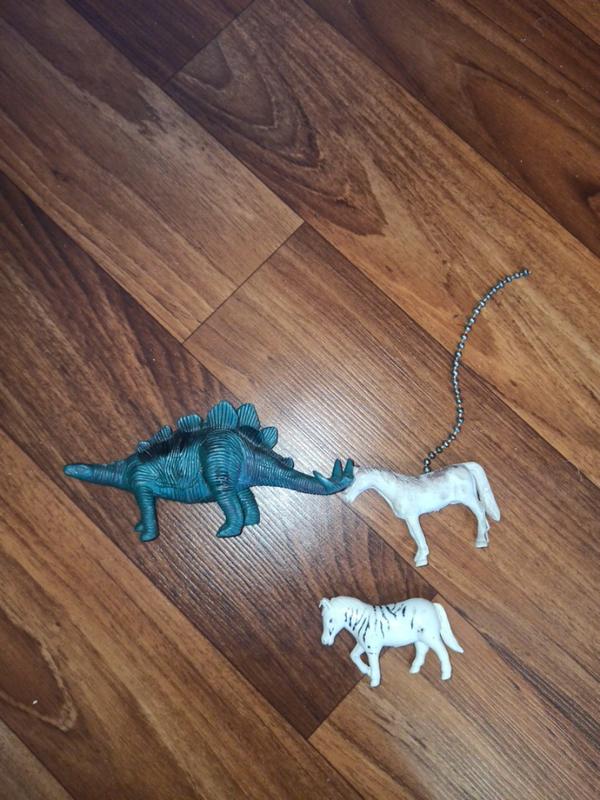 Динозавр, зебра и лошадь