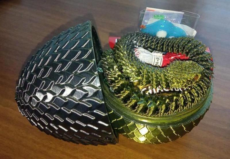 Матеріал Пластик (PLA) Метод виготовлення 3D-друк Розміри: Довжина змії 30 см Висота яйця 10 см Реалістичний луската текстура дизайн, ефектний металевий відтінок. Особливості: Унікальний дизайн яйце відкривається, змія виглядає реалістично та ефектно. Символ року Змія символізує мудрість, оновлення та процвітання – чудовий талісман на удачу та благополуччя у Новому році. Прекрасний вибір для подарунка та для декору інтер'єру. Призначення: Декор будинку, реквізит для фотосесій, подарунок. ✨ Додайте магію та символ удачі у ваш інтер'єр!