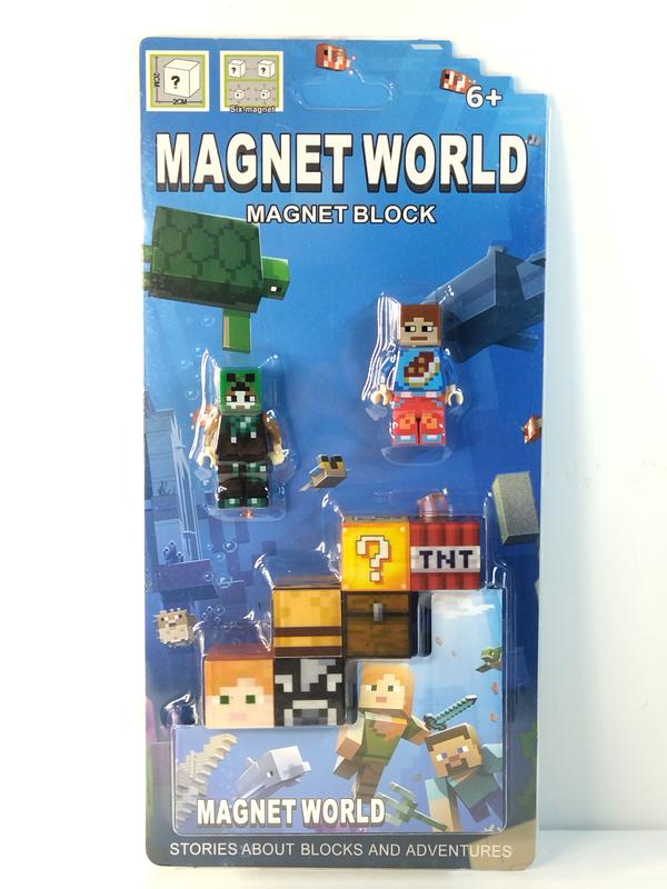 Конструктор магнитный майнкрафт, 6 кубиков + 2 фигурки.