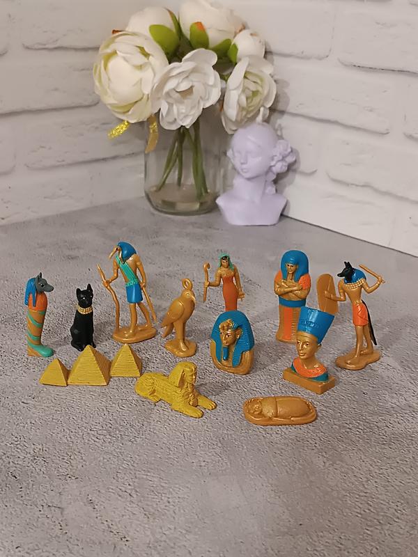 Набор фигурок Safari Ltd Древний Египетский в Тубусе 12 шт Стан отличный, в тубусе Набор включает 12 фигурок: Нефертити, Бастет, царя Тутанхамон, Исида, амулет, футляр с мумией, скарабей, пирамиды Гизы, Сфинкс, Тота, Анубиса и букву Ра.