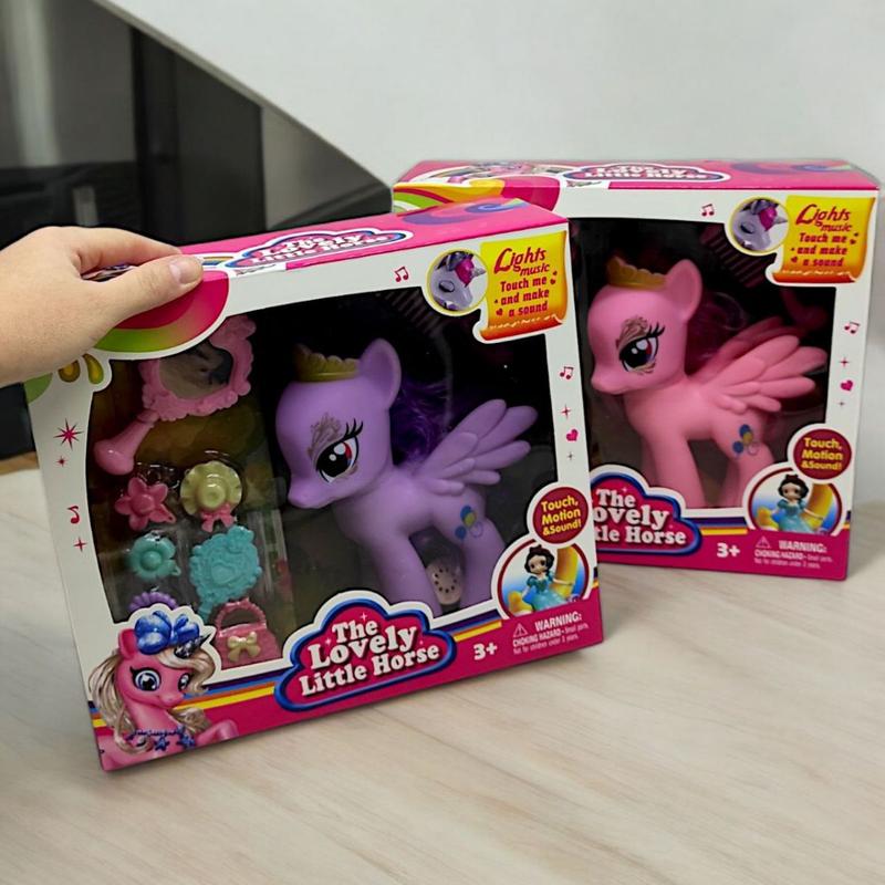 🦄Фігурка "My Little Pony"🦄 ⠀ Гумова фігурка My Little Pony з рухомою головою та яскравим підсвічуванням, яке доповнюється звуковими ефектами, такими як іржання та тупіт копит🦄У комплект входять аксесуари для гри та творчості: гребінець для зачіски, дзеркало, сумочка, капелюх та шпильки, що дозволяє дітям розвивати фантазію та створювати різні образи для своєї поні. Це ідеальний подарунок для шанувальників "Мій маленький поні", який поєднує в собі елементи гри та справжньої магії✨ В наявності є такі кольори: бузковий та рожевий ⠀ Ціна 330 грн