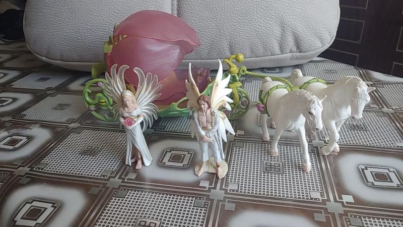 Весільна карета Schleich Bayala + 2 ельфа ( наречений та наречена ), стан хороший, раритет, загальна довжина - 40 см., ціна: 999 грн. Дивіться також інші мої оголошення, підписуйтесь та приємних Вам покупок!