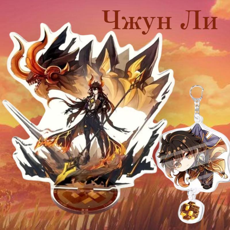 Акриловый стенд с персонажем игры Genshin Impact Чжун Ли - 15 см Брелок Чжун Ли - 7,5 см Новое.