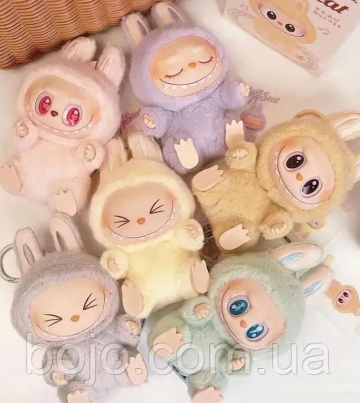 Плюшева іграшка Лабубу з серії Exciting Macaron у закритій коробці. Всередині випадковий персонаж, який стане відомим лише після відкриття. Висота іграшки — 17 см.