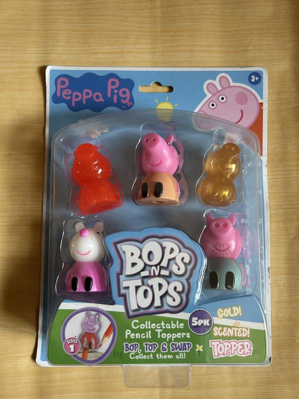 Peppa Pig Bops & Tops - колекційні насадки для олівців. Особливості: Колекційні насадки для олівців, призначені для дітей віком від 3 років, дозволяють "bop, top & swap" (змінювати верхню та нижню частини). Серія: Серія 1. Кількість: У наборі 5 штук. Додаткові особливості: Насадки ароматизовані, одна з них золота.