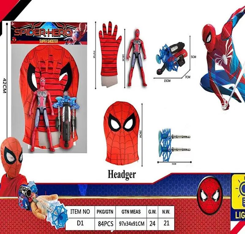 Герои ØСпайдермен↑ D1/ 6712 - перед заказом, пожалуйста, уточняйте наличие (оптовый состав). Игрушечный набор супергероя, который включает в себя фигурку Человека-паука, маску, перчатку и две шарики-присоски. Набор предназначен для детей и является одной из многих игрушек, воспроизводящих персонажа комиксов Marvel. Детали о наборе: Артикул: D1/ 6712. Содержание: Фигурка супергероя (около 18 см), которая выдает световые эффекты, маска, перчатка и две шарики-присоски.