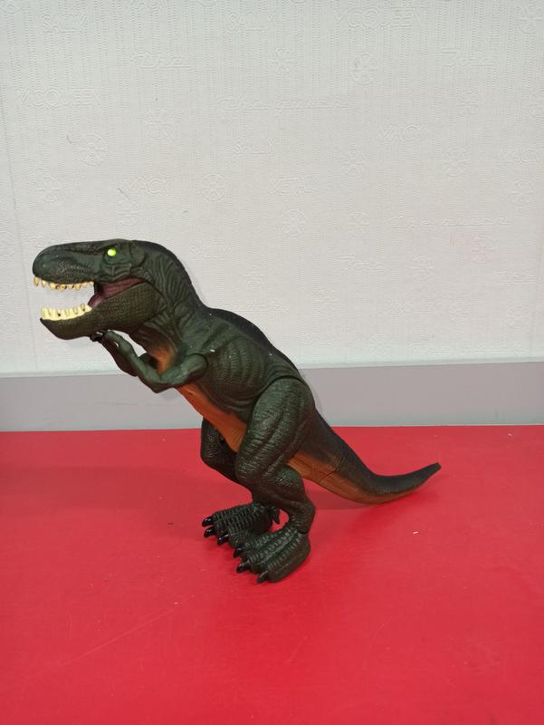 динозавр звук и светятся глаза, немного приржавевших контакт, есть пятнышки краски, отломленный кончик хвоста, в цене все учтены