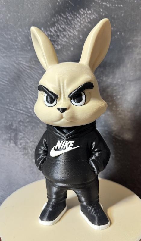 Фигурка «Заяц в Nike» (с подвижными элементами) Эксклюзивная коллекционная фигурка в виде антропоморфного зайца в современном наряде Nike. Благодаря подвижной голове и ногам (ступням), модель приобретает интерактивность и позволяет менять позы. Это не только декоративный элемент, но и стильный арт-объект, который сочетает геймерскую и streetwear-культуру. --- Основные преимущества - 🐇 Уникальный дизайн: сочетание образа зайца с брендовой одеждой Nike - 🔄 Подвижные элементы: поворотная голова и ноги добавляют динамики - 🖤 Качественный материал: PLA-пластик — легкий, прочный и безопасный - 📏 Большие размеры: высота 22 см делает фигурку заметной в коллекции - 🎁 Идеальный подарок: для коллекционеров, фанатов современного дизайна и 3D-артов --- Технические характеристики | Параметр | Значение | |------------|----------| | Высота | 22 см | | Ширина | 11 см | | Длина | 9 см | | Материал | PLA-пластик | | Особенности| Поворотная голова и ноги (ступни) | | Стиль | Streetwear / Nike | ---