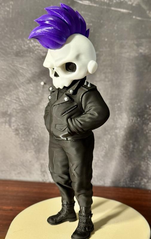 Эксклюзивная коллекционная фигурка «Черёп Панк с ирокезом и надписью AC/DC» - уникальный авторский арт-объект, созданный в стиле альтернативной культуры. Она сочетает образ черепа с ярким фиолетовым ирокезом, кожаной курткой и массивными ботинками, а на спине красуется культовая надпись AC/DC. Фигурка напечатана из PLA-пластика, что обеспечивает прочность и долговечность. Высота 28 см делает ее заметным элементом интерьера, который сразу привлекает внимание. Это не просто игрушка, а настоящий арт-объект для фанатов рок музыки, панк-культуры и коллекционеров уникальных изделий. --- Основные преимущества - Уникальный дизайн: череп с ярким ирокезом в стиле панк - Музыкальный акцент: надпись AC / DC на спине — отсылка к легендарной группе - Качественный материал: PLA-пластик, легкий и безопасный - Большие размеры: 28×10×10 см — настоящий центр внимания - Коллекционная ценность;