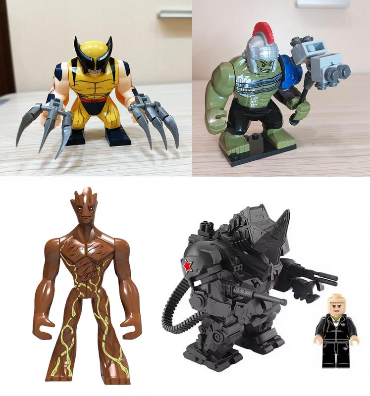 Великі фігурки з серії marvel В наборі 4 фігурки - росомаха, халк гладіатор, носоріг rhino та грут Повністю сумісні з лего Фігурки нові. Поставляються в пакеті. Виготовлені з якісних, безпечних матеріалів Розмір фігурок Росомаха - 7,5 см Халк гладіатор - 8 см Носоріг Rhino - 9 см Грут - 11 см Чудовий подарунок для фаната лего та кіновсесвіту Марвел