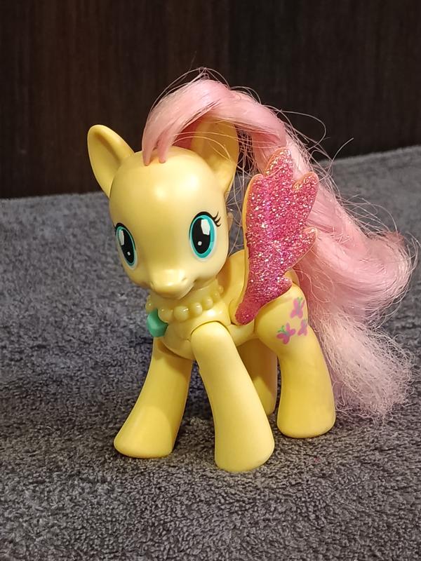 Флаттершай, состояние в идеале, немного распушен хвостик, на шее кнопка , нажимаешь, двигаются крылья, ножки тоже подвижны