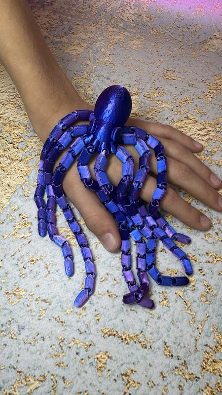 Восьминіжка, надрукована на 3д принтері. Класна, яскрава рухома реалістична фігурка, яка точно сподобається вам та вашим дітям! Роздрукована яскравим пластиком. Загальний розмір 20 см