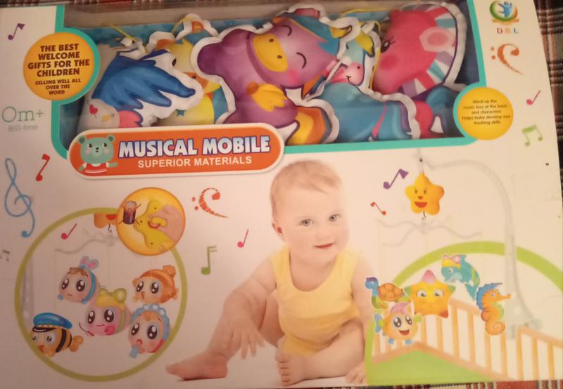 мобиль на кроватку. игрушки мягкие. музыкальный блок заводной.