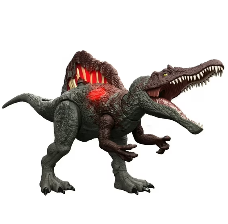 Епічні атаки! Ця фігурка Battle Slashin´ Spinosaurus готова до бою з багатьма функціями битв і пошкоджень, а також має деко болотного кольору Жвав і рев! Потягніть будь-яку руку вгору, щоб активувати човкання та ревіння голови, що обертається вбік, на цьому спинозаврі довжиною понад 21 дюйм Світло та звуки! Натисніть панель пошкоджень на задньому вітрилі один раз, щоб відкрити зону пошкодження за допомогою світлового ефекту та звуків! Посилення шкоди! Продовжуйте натискати кнопку для 3 рівнів посилення шкоди та зміни звуків Цифровий динозавр та ігри! Відскануйте прихований код відстеження в безкоштовному додатку Jurassic World Play за допомогою сумісного смарт-пристрою (не входить у комплект), щоб зібрати цифрового динозавра та грати в надзвичайно веселі ігри! Ride ´N Rampage! У цій грі почніть гонки на мотокросі та активуйте «Режим руйнування», щоб раптово перетворитися на шаленого динозавра! Виробник: Mattel, Оригінал