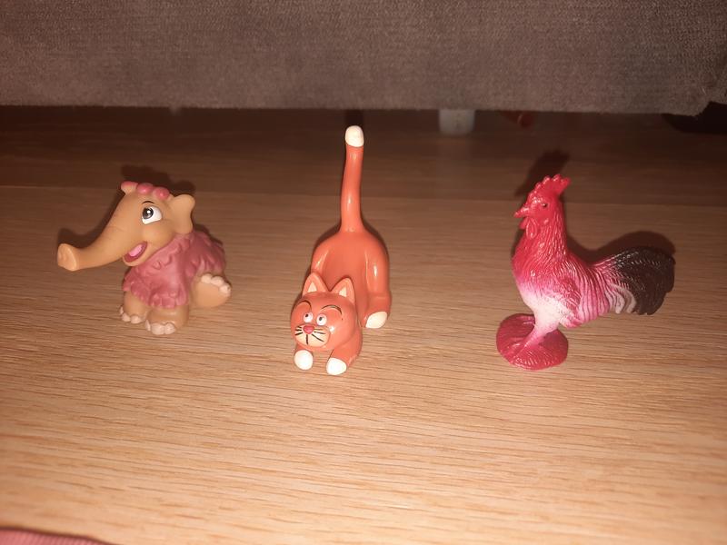 Игрушечные фигурки мамонт маленький, котик (продан), петушок
