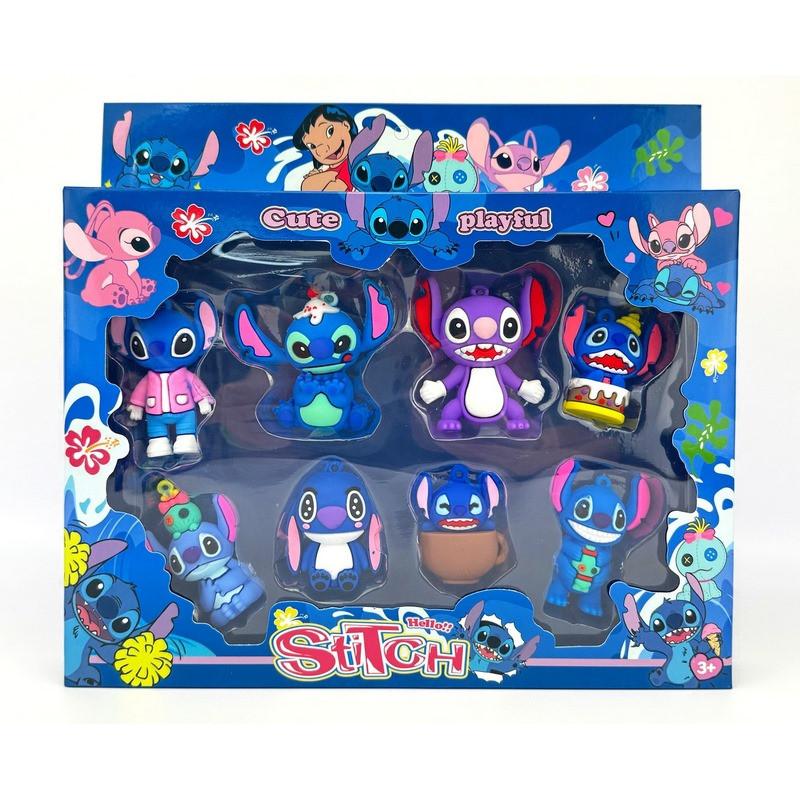 Яркий набор из 8 силиконовых фигурок в стиле популярного мультфильма “Лело и Стич”. В каждой фигурке передают эмоции и забавные образы любимого героя Стча – от веселого до озорного. Они станут отличным подарком детям, коллекционерам и любителям мультсериала. Фигурки изготовлены из силикона, приятного на ощупь, устойчивого к повреждениям и пригодного для активных игр.