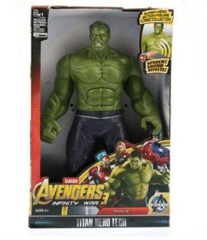 Халк - супергерой Марвел. Высота: 30 см Световые и звуковые эффекты Подвижные суставы, качественный пластик. Будет незабываемым подарком для ребенка.