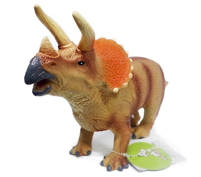 Хорошая фигурка травоядного, доброго динозавра длинной в 35 см. Рептилия имеет две длинных рога на лбу и один короткий, на носу. Оснащён музыкальными эффектами -- трёхкратным криком.