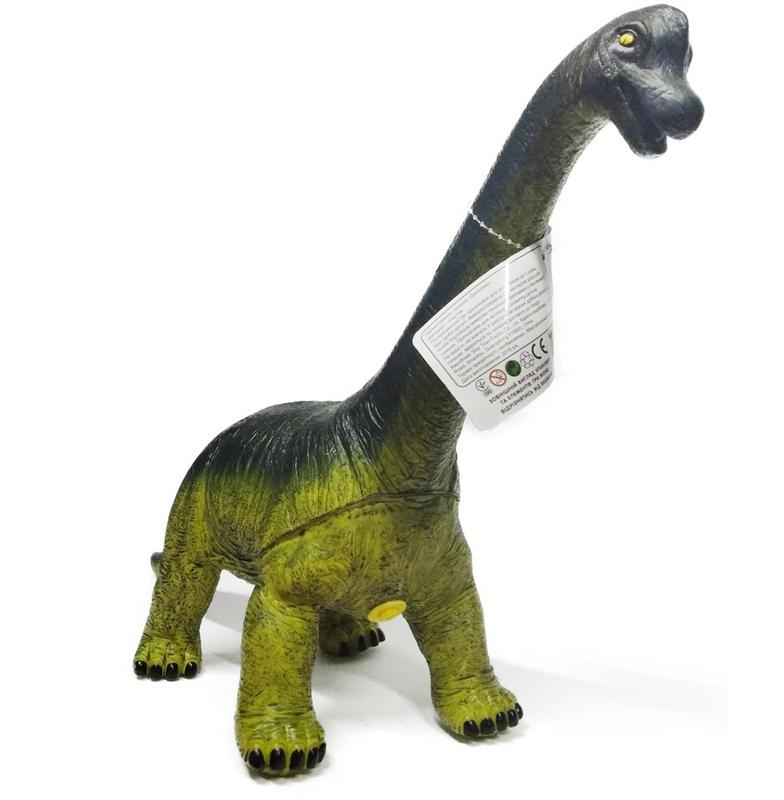 Фигурка динозавра из серии "Світ Динозаврів" TK Group. Брахиозавр -- это большущий длинношеий, травоядный вид. Ноги и брюхо его окрашены в зелёный, плавно перетекающий в тёмно-болотную спину и почти полностью чёрную голову, с двумя ма-а-аленькими точечками глазок. Фигурка животного составляет около 50 см в длину, 29 см в высоту и 15 см в ширину. Обладает соответствующим звуковым сопровождением.