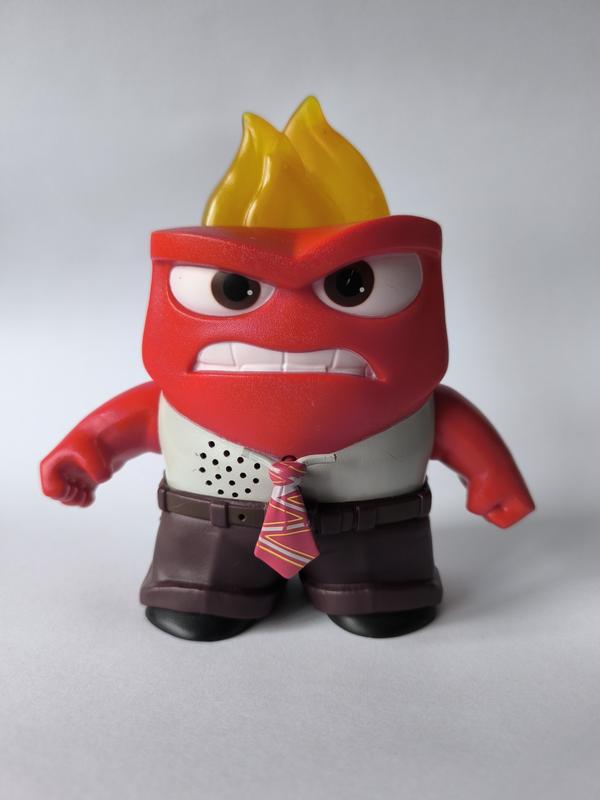 Высота 17см. Огонь прячется в голову и нажатием на галстук - выскакивает, также издает звуки и фразы на английском.