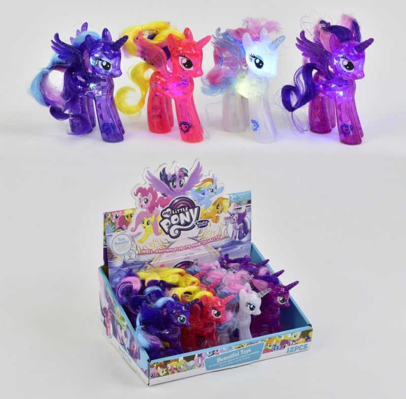 Неймовірно привабливі та дуже милі модельки поні в блоковому наборі 2014! Модель поні виконана з високоякісної первинної пластмаси й обладнана світловим ефектом, який активується натисканням кнопки. При активації весь корпус поні підсвічується різними кольорами. У поні густа та шовковиста грива й хвіст.