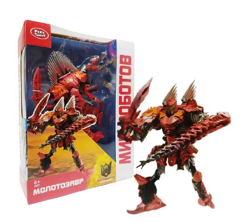 Развивающая игрушка "Мир роботов" супер трансформирующая. Молотозавр -- у него огромная пасть, с очень острыми зубами и мощный хвост молот, который сокрушит все на своем пути! Размер игрушки: 18 см