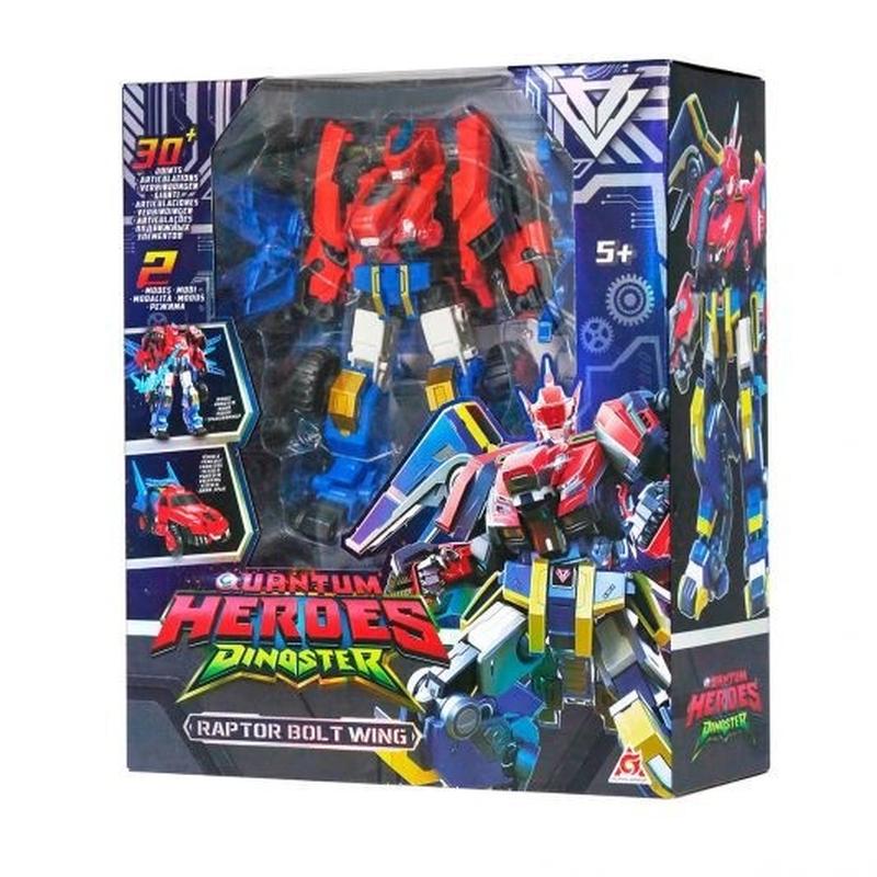 Відкрийте для себе дивовижний світ динозаврів разом з командою DINOSTER! Завдяки своїм пригодам четверо друзів долають великі випробування, щоб захистити динозаврів. Вітаємо у команді DINOSTER!Вивчайте та рятуйте динозаврів разом з Раптор Болт Вінг! Цей робот завжди допоможе у нелегкій ситуації! Обирайте один з двох режимів трансформації та поринайте у захопливі пригоди! Обігруйте сценки з мультсеріалу або ж створюйте власні сюжетні лінії! Два режими трансформації: Раптор Болт Вінг і Супер Раптор-Род. Для зміни режимів потрібно детально ознайомитися з інструкцією. Багато етапів трансформації для більш цікавої гри. Робот-трансформер має більше 30 рухомих елементів! Розмір робота - 22 cm. Приготуйтесь до бою! Використовуйте квантовий лук, або ж перетворіть його у 2 квантові мечі. Пакування можна перетворити на епічний фон для захопливої гри. Зберіть всю колекцію роботів-трансформерів, відкрийте інші комбінації!