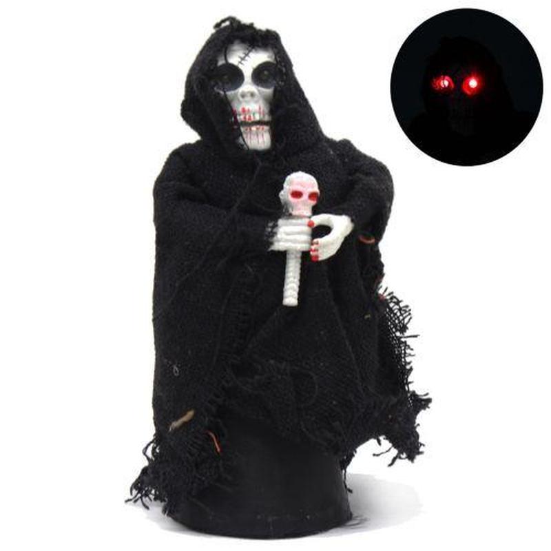 Уценка. Фигурка "Скелет" (на подставке), черный (Сели батарейки) Фигурка скелета станет отличным дополнением к декорациям на Хэллоуин. Имеет звуковые и световые эффекты: светятся глаза и играет мелодия. Одет в черную накидку. Размер игрушки 18х9х5 см. Упаковка: Пленка Цвет: Черный Тип эл-тов питания: Батарейка Эл-ты питания в комплекте: Есть Вес в упаковке: 60 г Габариты в упаковке: 9 x 18 x 5 см Cтрана производитель: Китай Материал: Комбинированный Комплектация: Скелет