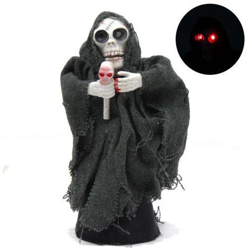 Уценка. Фигурка "Скелет" (на подставке), серый (Сели батарейки) Фигурка скелета станет отличным дополнением к декорациям на Хэллоуин. Имеет звуковые и световые эффекты: светятся глаза и играет мелодия. Одет в серую накидку. Размер игрушки 18х9х5 см. Упаковка: Пленка Цвет: Серый Тип эл-тов питания: Батарейка Эл-ты питания в комплекте: Есть Вес в упаковке: 60 г Габариты в упаковке: 9 x 18 x 5 см Cтрана производитель: Китай Материал: Комбинированный Комплектация: Скелет