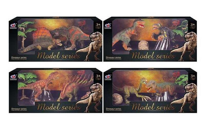 Набор динозавров q 9899 m 4 – 4 вида, 4 фигурки, 2 динозавра, аксессуары в коробке