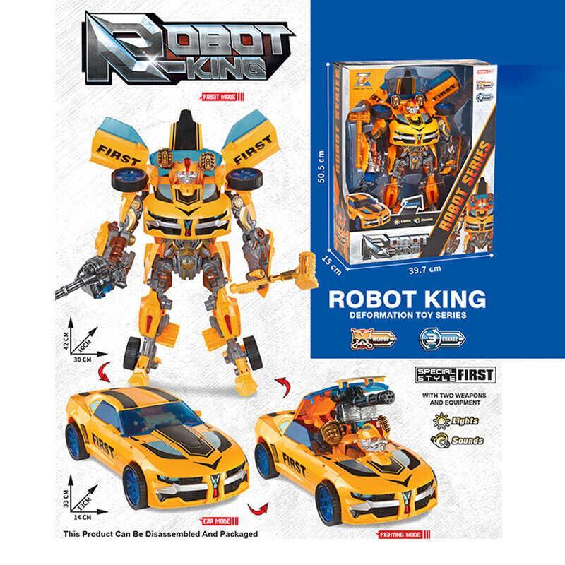 Универсальная игрушка-трансформер 8816-1 Этот трансформер сочетает в себе две захватывающие формы – скоростной спорткар и мощного робота. Благодаря простому механизму трансформации ребенок легко меняет облик, создавая новые сюжеты для игры. - Размеры машинки: 14х13х33 см - Размеры робота: 30х10х42 см - Подсветка и звуковые эффекты выстрелов - Кнопка активации эффектов расположена под головой робота - Высокая детализация элементов - В комплекте разные виды оружия для робота Яркое оформление и реалистичные эффекты делают эту игрушку отличным выбором для развития воображения, мелкой моторики и творческого мышления детей, увлекающихся техникой и приключениями.