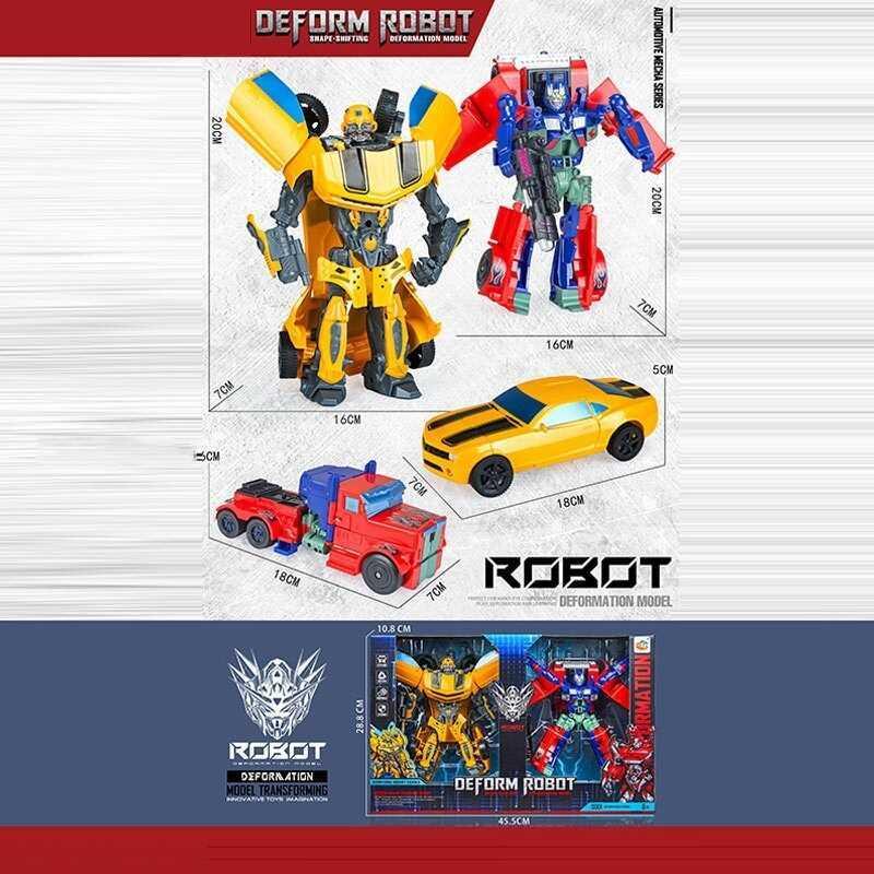 Двойная порция увлекательной игры с трансформерами Этот набор из двух трансформеров 689-14 подарит детям возможность окунуться в мир приключений и фантазии. Каждый трансформер легко превращается из машины в робота всего за несколько движений, делая игру динамичной и интересной. - В комплекте 2 трансформера с подвижными частями - Средняя высота фигурок – около 20 см - Плавная трансформация машин в роботов и обратно - Дополнительное оружие для боёв между роботами - Яркие цвета и высокая детализация - Изготовлены из качественного пластика, безопасного для детей Игрушки способствуют развитию мелкой моторики, воображения и творческого мышления, помогают весело провести время с друзьями или самостоятельно.