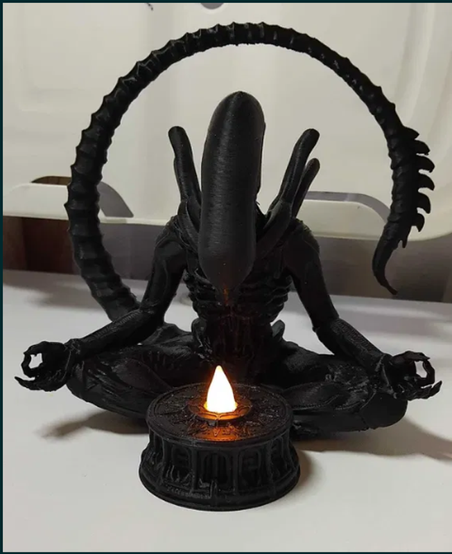 Уникальная 3D-печатная фигурка в стиле культового «Alien» Предлагаю оригинальную статуэтку, выполненную в медитативной позе, со специальным местом для LED свечи (имеется в комплекте). В темноте фигурка создает стильный атмосферный эффект и станет ярким элементом вашего интерьера. Материал: PLA — экологичный и безопасный пластик Размеры: 15×15×9 см (можно напечатать любой другой размер по заказу) Цвет: черный (доступные и другие цвета) Изделие напечатано с высокой детализацией и отлично подходит: • для декора дома или офиса • коллекционерам и фанатам вселенной Alien • в качестве оригинального, нестандартного подарка Также могу выпечатать другие модели по заказу - от фигурок до уникальных дизайнерских предметов. Пишите — с удовольствием изготовлю именно то, что вам нужно!