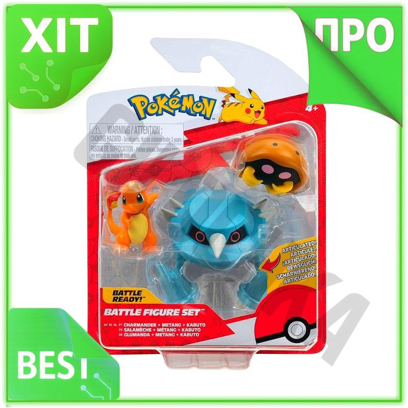 Ve набор игровых фигурок pokemon new version кабуто чармандер метанг для детей от 4 лет ко...