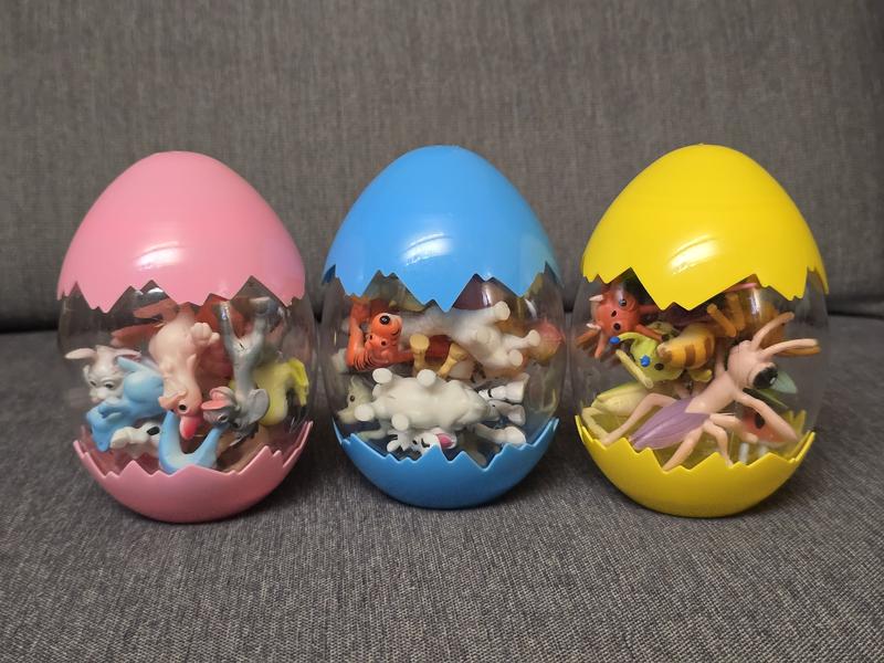 Набір для вивчення тварин свійських, диких та комах. Кожен різновид у своєму яйці. Фігурка прорезинена, нерозбірна підійде найменшим. Дуже корисні при вивчені карток - дитина може їх розставляти. Ціна: 135 грн/шт або 370 за усі