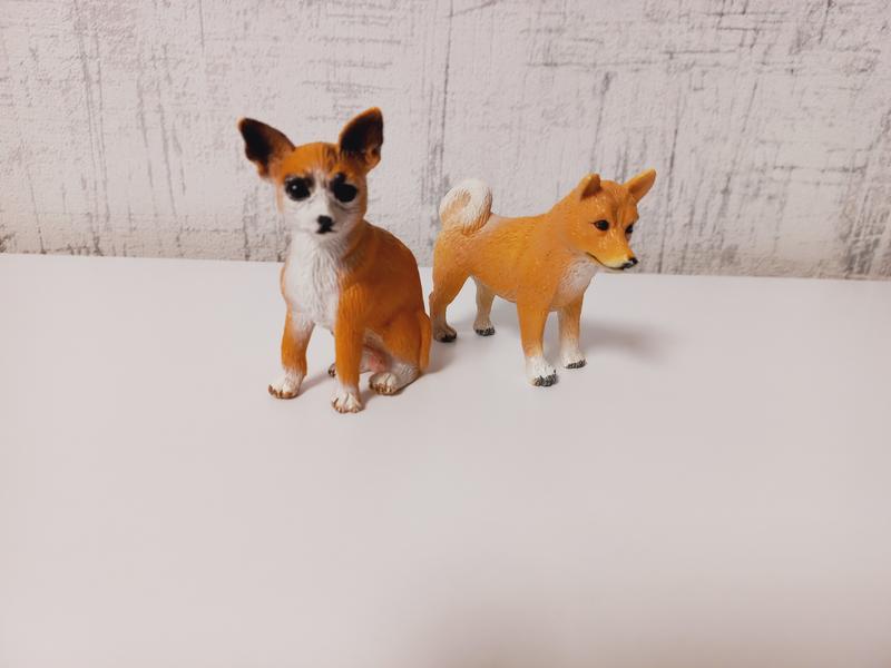 Собака Чихуахуа и Акита-ину. высота ~7см