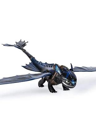 Самая большая версия из всех выпусков, 55см Эта та самая коллекционная уже игрушка, первое издание дракон Беззубика с мультфильма Как приручить дракона Особенность этой версии это то что при нажатии на ушки дракон открывает пасть -светится голубым пламенем и выпускает настоящий пар ! Максимальная схожесть с персонажем с мультика Дракон качественный, массивный , в идеальном состоянии , Крылья есть возможность раскрывать в нескольких положениях , лапы неподвижны Ушки и кончик хвоста как прорезинены, они гибкие Отсек для залива воды находится на спине игрушки . Состояние отличное , есть немного потертости окраса , без трещин , сколов