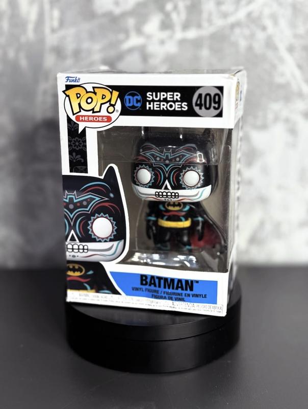Funko Pop! Batman (DC Super Heroes) Ексклюзивний Batman у стилі Día de los Muertos - яскравий, атмосферний і дуже фотогенічний І ** Оригінальний Funko Pop 1• Коробка: є сліди зберігання (див. фото) • Ідеально для колекціонерів та фанатів DC • Крутий акцент для полиці або подарунок