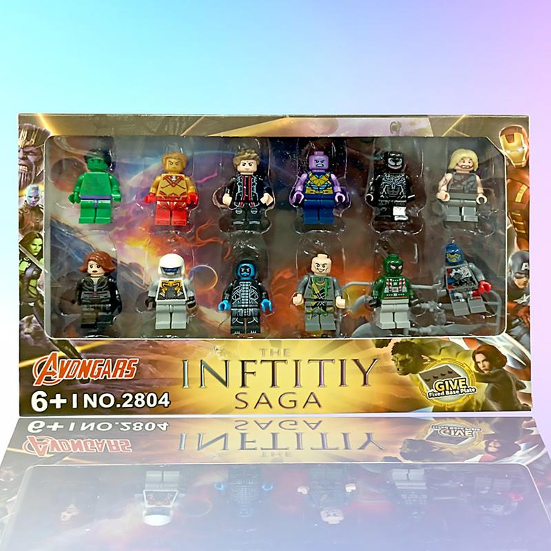 Набор фигурок Avengers (2804) Описание: Игровой набор из 12 мини-фигурок по мотивам вселенной Marvel “Мстители”. В комплект входят как герои, так и злодеи, выполненные в стиле конструктора. Каждая фигурка имеет подвижные элементы и может использоваться для сюжетных игр или в коллекции поклонников Marvel. Преимущества: - В наборе 12 популярных персонажей Marvel - Детализированные фигурки с подвижными частями - Безопасные и прочные материалы - Совместимость с конструкторами аналогичного формата - Подходит для игр и коллекционирования Характеристики: - Количество фигурок: 12 - Возрастная категория: 6+ - Материал: пластик - Совместимость: с конструкторами в стиле Lego - Тип упаковки: коробка с блистером
