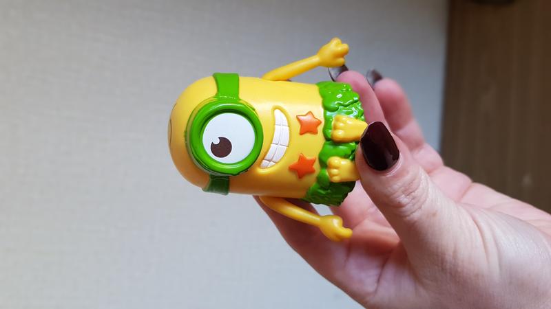 коллекционная фигурка миньона в гавайском наряде с Хеппи Мил в McDonald's. Это коллекционная фигурка Гавайскиго миньона (Hawaiian Minion) из серии игрушек Happy Meal от McDonald's, выпущенной в 2015 году до выхода мультфильма «Сипаки». Название модели: Часто встречается под названиями «Jurassic Sliding Minion» или «Hawaiian Minion». Особенности: Фигурка изображает миньона в образе жителя джунглей или Гававей - в юбке из листьев и с красными звездами на груди. Некоторые игрушки этой серии имеют подвижные части или инерционные механизмы.