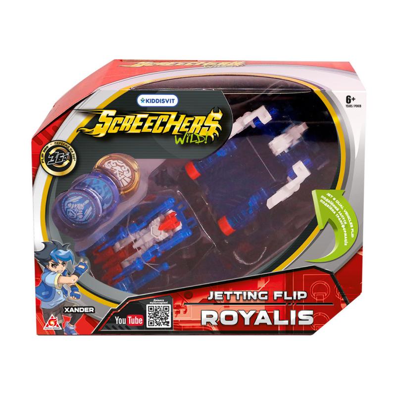 Screechers Wild! - это первые в истории игрушки-машинки, которые делают сальто на 360 градусов и трансформируются в фантастическое существо прямо в воздухе. Стоит такой машинке поймать скричер-диск, как она трансформируется в огромного мощного скричера. Можете себе такое представить? Встречайте новый сезон! Устраивайте невероятные приключения, зрелищные бои и фантастические гонки. Каждый скричер трансформируется в животное с суперсилой, нужно только запустить машинку, направляя ее на магнитный диск, или наоборот запустить диск в машинку, при касании с которым она сделает кувырок в воздухе и превратится в зверя. РОЯЛИС высоко ценит своих друзей, и его желание защитить их превосходит все остальное. РОЯЛИС - турбо-скричер, трансформируется в крутого рыцаря. Для этого совместите две машинки, поймайте два диска и активируйте запуск! Сделайте двойной кувырок на 360° с помощью третьего диска и двойная трансформация завершена! Для того, чтобы трансформировать животное обратно, нужно извлечь диски и закрепить пружинку снизу машины, и Вы снова можете вступать в бой. Дикие скричеры в комплекте с турбо-скричером взаимозаменяемы со скричерами из 4-ой линейки. Диск имеет гладкую поверхность для безупречного скольжения и резиновую поверхность для фиксации на месте. Испытайте своего скричера, сражайтесь за скричер-топливо и одержите побед.у Машинка-трансформер РОЯЛИС обладает прочной конструкцией с надежными креплениями и выполнена из высококачественного материала. В наборе SCREECHERS WILD! S2 L2 - РОЯЛИС: Машинка, 3 диска. Самое время начать собирать всю коллекцию " Диких Скричеров" ! Участвуйте в баттлах – станьте крутым скричером!