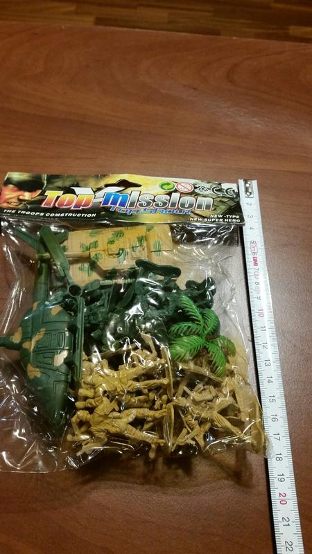 в набор входит : 30 солдатиков + танк + вертолет + дерево. смотрите другие мои предложения по солдатикам.