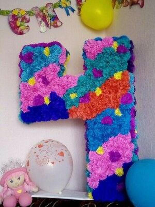 Яркая и очень красивая четверка на день рождение. Украсит праздник вашего ангелочка, подходит, как для девочки, так и для мальчика. Сделайте яркий праздник и фотосессию вашего ребёнка!!! Высота 80см ширина 60см. Сделана с гофрированной бумаги. Ручная работа
