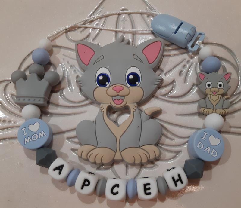 Невероятной стильный держатель из силиконовых бусин и разных фигурок для соски. Все бусинки из пищевого силикона. Нанизано на прочный нейлоновый шнур, который не под силу порвать даже мужчине. Пластиковая клипса надёжно крепится к одежде, коляске малыша, так что он не сможет её снять без помощи мамы. На держатель возможно повесить соску, грызунок, ниблер или любимую погремушку. перешлю