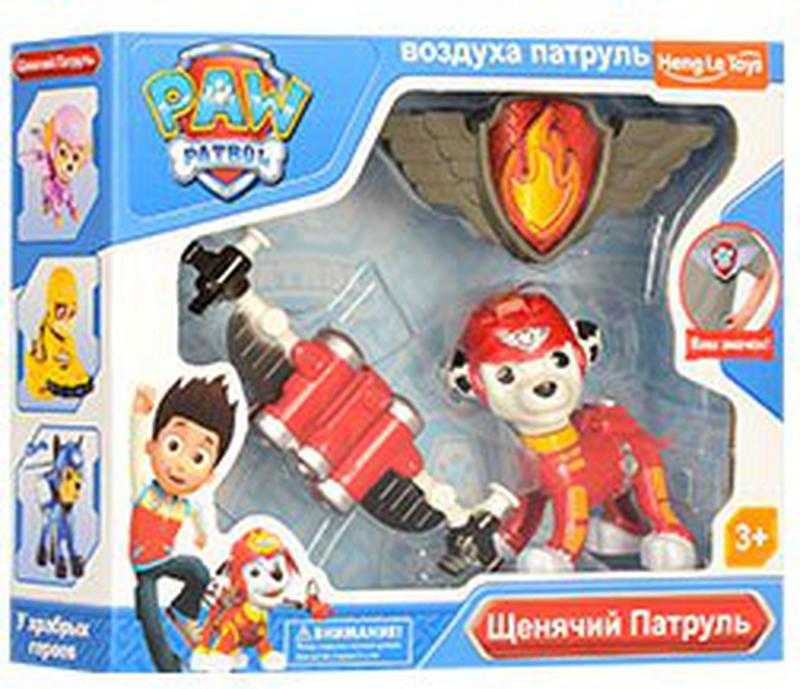 интересный игровой набор щенячий патруль, в него входит транспорт, эмблема и фигурка любимого героя мультфильма 7 см, такому подарку будет рад любой малыш, размер коробки 23-19-6см